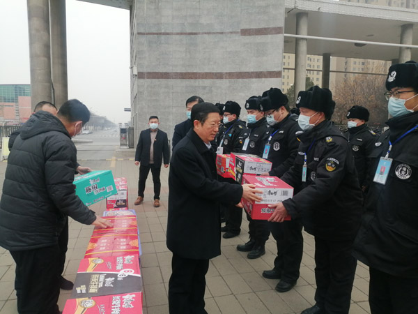 1月15日上午,安陽工學(xué)院校長景國勛一行,帶著方便面、蘋果、橘子等慰問品,來到人防三大隊(duì)派駐工學(xué)院保安班駐地慰問堅(jiān)守在一線執(zhí)勤的隊(duì)員。人防三大隊(duì)領(lǐng)導(dǎo)王武魁、聶紹***、閆永勝參加了慰問活動(dòng)。