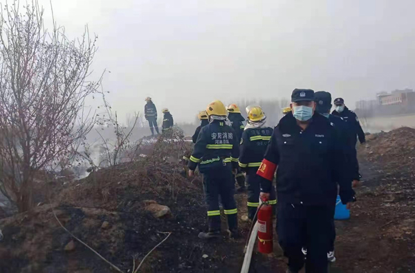 上午9時許,保安員屈國營、郭慶陽、李海***、申安民巡邏至轄區(qū)中華路王官屯北路時,看到路邊防護林草叢正在燃燒,由于天干物燥,火勢蔓延很快。隊員立即引導(dǎo)旁邊群眾疏散,撥打119消防電話報警,并從車上拿出滅火器冒著滾滾濃煙,全力撲滅大火,盡******努力防止大火蔓延,避免造成更大的損失。雖然灰燼落滿了全身、汗水濕透了衣背、濃煙模糊了雙眼,但保安員依然斗志昂揚、毫不畏懼。很快,消防救援人員趕到,保安員又配合消防人員,終將燃燒的干草撲滅。