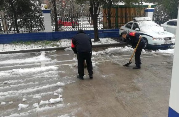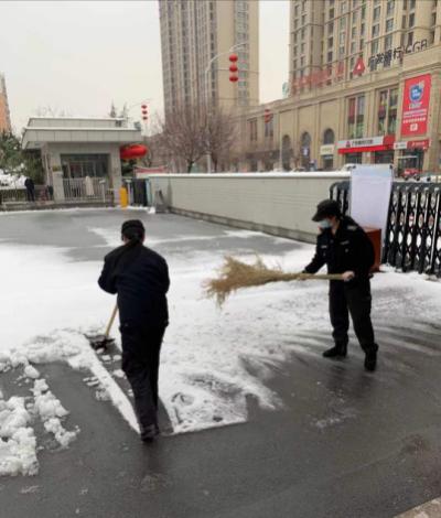 2月24日18時(shí)許,新年的******場(chǎng)雪如期而來(lái),飄落的雪花給特保大隊(duì)派駐崗點(diǎn)院內(nèi)道路上鋪上了一層厚厚的積雪,為了消除安全隱患,確保客戶單位領(lǐng)導(dǎo)與工作人員的出行安全,特保大隊(duì)派駐各客戶單位隊(duì)員迅速行動(dòng)起來(lái),清掃積雪。隊(duì)員們周到的服務(wù)受到客戶好評(píng)。