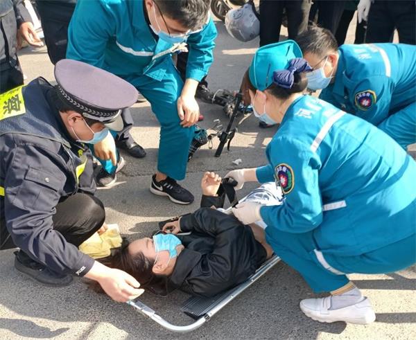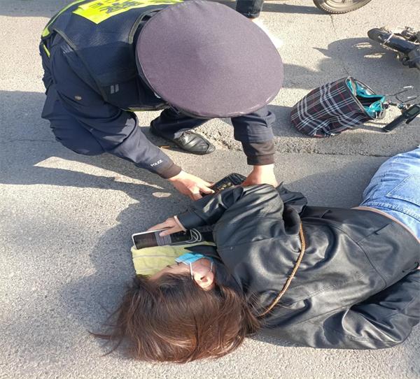 隊(duì)員了解情況后,幫助李女士撥打了120,并聯(lián)系了李女士愛(ài)人。因不知了解此事件是不是屬于交通肇事,但為了保險(xiǎn)起見(jiàn),隊(duì)員同時(shí)撥打122,通知交警。