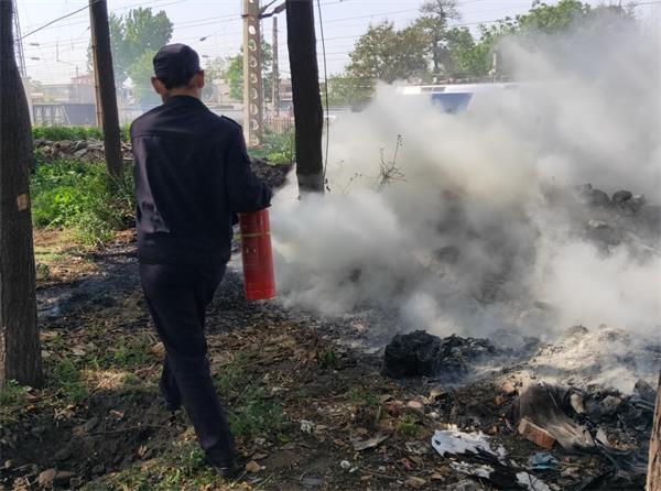5月5日下午2點30分,人防四大隊電廠路街道巡防隊隊員高麗慧、袁利民在鐵路沿線巡邏,發(fā)現(xiàn)梁邵村附近的鐵路邊濃煙滾滾,有刺鼻的氣味,兩人立即開車前往現(xiàn)場了解情況。到達現(xiàn)場后,他們發(fā)現(xiàn)鐵路邊的荒草樹等雜物正在燃燒,現(xiàn)場火勢不太大,沒有人員受傷。他們隨即與鐵路工作人員聯(lián)系,并立即利用鐵鍬、滅火器等工具開展滅火行動,經(jīng)過他們和鐵路員工的共同努力,火勢已經(jīng)基本得到控制,火情基本被消滅,他們的行為受到了轄區(qū)領導的一致表揚。
