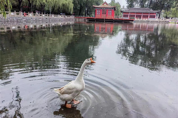 白鵝有意仰天傲,綠柳無心垂地憐。