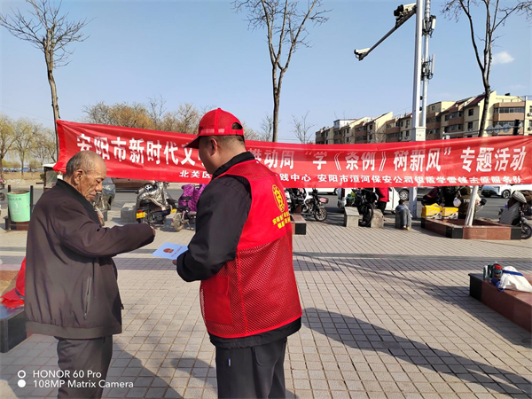 為大力培育和弘揚社會主義核心價值觀,引導廣大群眾樹立文明觀念,3月3日下午,公司組織志愿者來到平原橋法治廣場開展安陽市新時代文明實踐推動周“學條例 樹新風”《安陽市文明行為促進條例》集中宣傳活動。