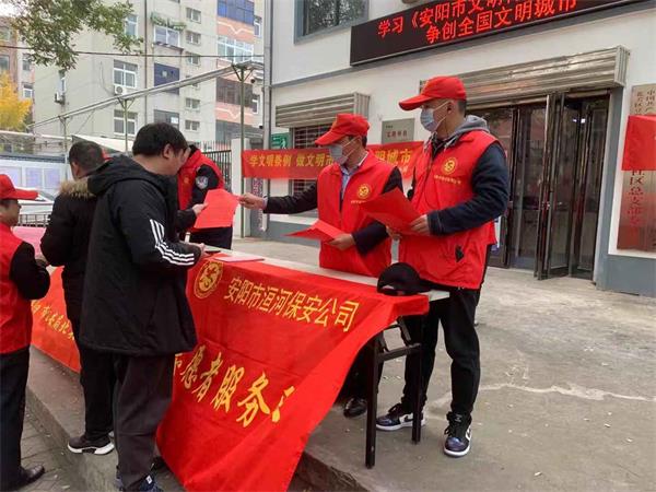 活動中,在盤庚中社區(qū)門口、社區(qū)小廣場、周邊小區(qū)附近,公司志愿者們走進樓棟入戶宣傳,走進沿街對商戶宣傳,向來往人員進行宣傳,共向社區(qū)居民和周邊商戶合計發(fā)放了100余份《安陽市文明行為促進條例》宣傳材料。