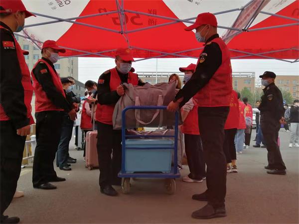 活動中,黨員志愿者戴黨徽、亮身份,樹立黨員和洹河保安良好形象。依照分工,有的黨員志愿者提醒報到新生佩戴口罩、掃健康碼和行程碼,主動幫助學生搬運行李,并對學生隨身物品消毒。有的黨員和其他志愿者一起打掃衛(wèi)生。三天報到時間,保障了8100名新生和全體師生員工通行安全和財產(chǎn)安全。