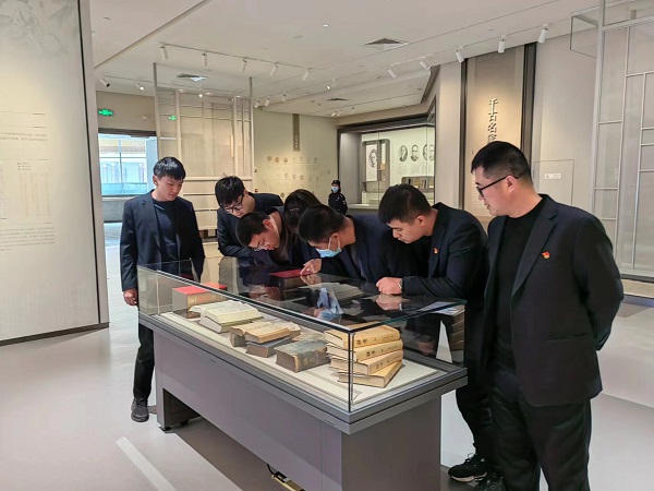 在“中國文字博物館”二期“徽文館”,黨員干部們依次參觀了“字書瓊林”“說文解字”“詞典類”等專題展區(qū),詳細(xì)了解了民俗文化中所蘊(yùn)涵的漢字文化、古文字從古至今的研究成果,從歷代書法名家的名作中感悟漢字書法藝術(shù)的菁華。