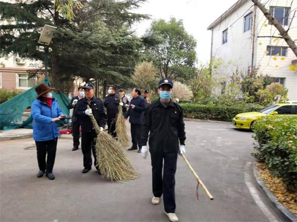 黨員們在鮮艷的黨旗下,清理該小區(qū)健身廣場、籃球場、小區(qū)內(nèi)公共道路的落葉和垃圾。他們有的拿掃帚,有的持鐵锨,有的推車拉運垃圾,熱情高漲,干勁沖天。雖然天氣寒冷,但是大家身上很快就出汗了。經(jīng)過2個多小時的緊張勞動,預定區(qū)域被清理的干干凈凈。