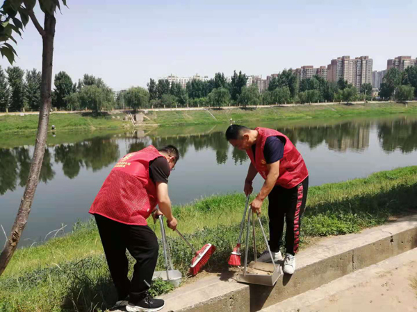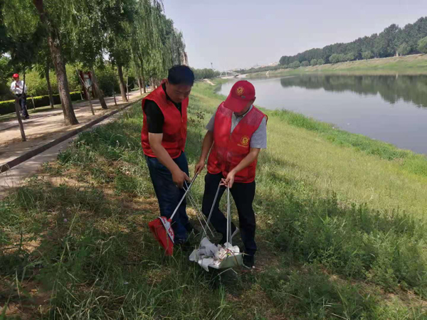 活動中,大家不怕苦不怕累,拿起鉗子、掃把和垃圾袋,頂著大太陽,沿著安陽河畔清理垃圾。同志們所到之處,不管是隱藏在草叢中的塑料袋、空瓶子,還是白色垃圾都被一一撿起,裝到垃圾袋里帶走。